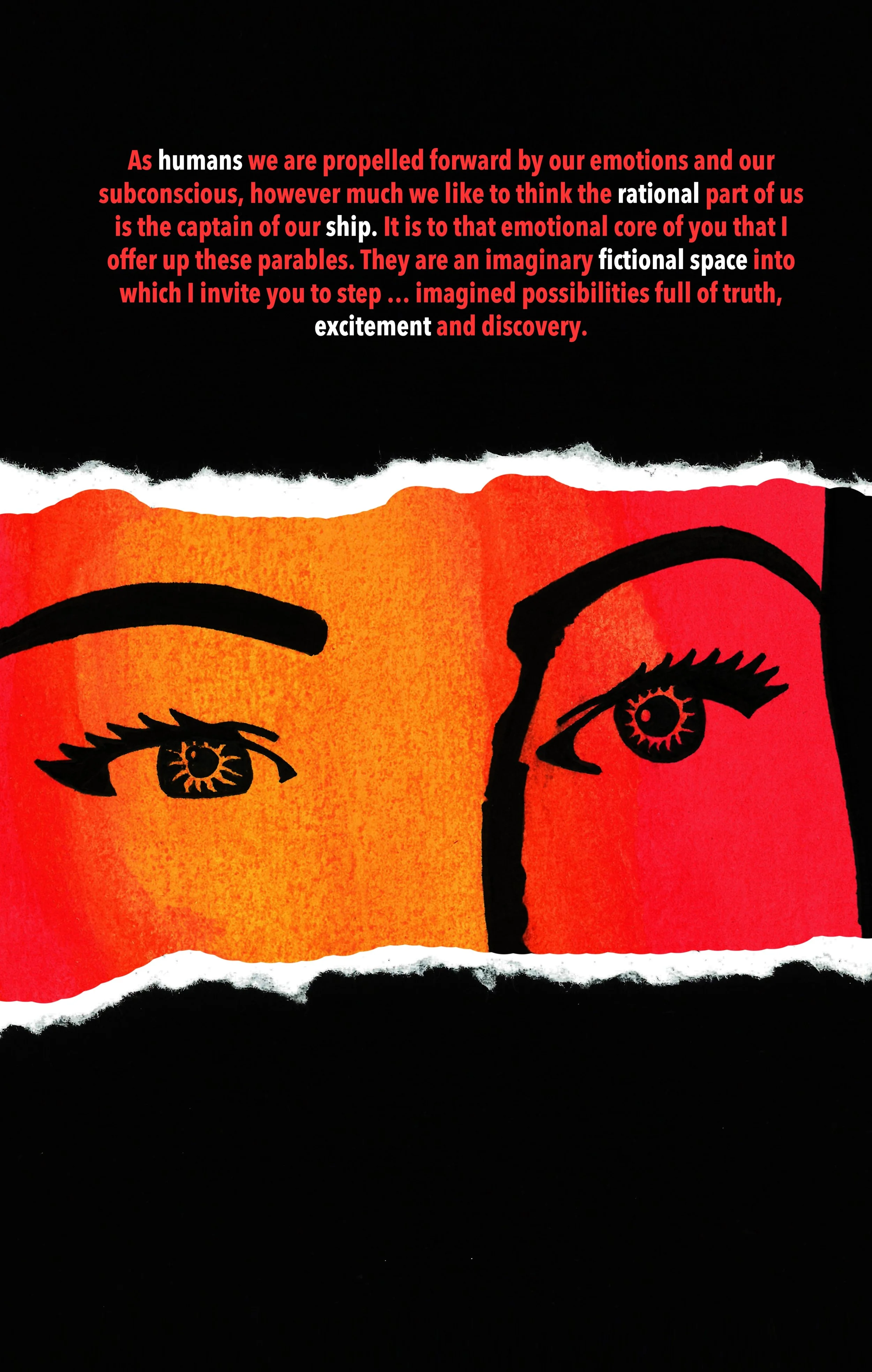 As humans we are propelled forward by our emotions and our subconscious, however much we like to think the rational part of us is the captain of our ship. It is to that emotional core of you that I offer up these parables. They are an imaginary fictional space into which I invite you to step … imagined possibilities full of truth, excitement and discovery.